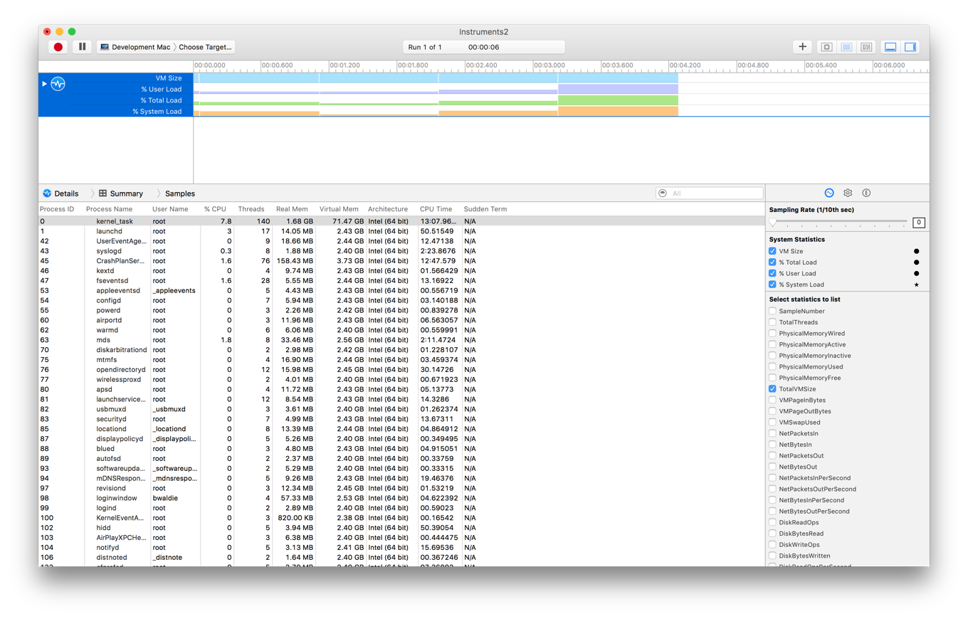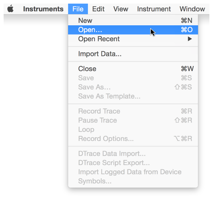 iprofiler -activitymonitor -T 5s -d ~/Desktop/ PathToYourAppOpen Instruments, and choose File > Open.