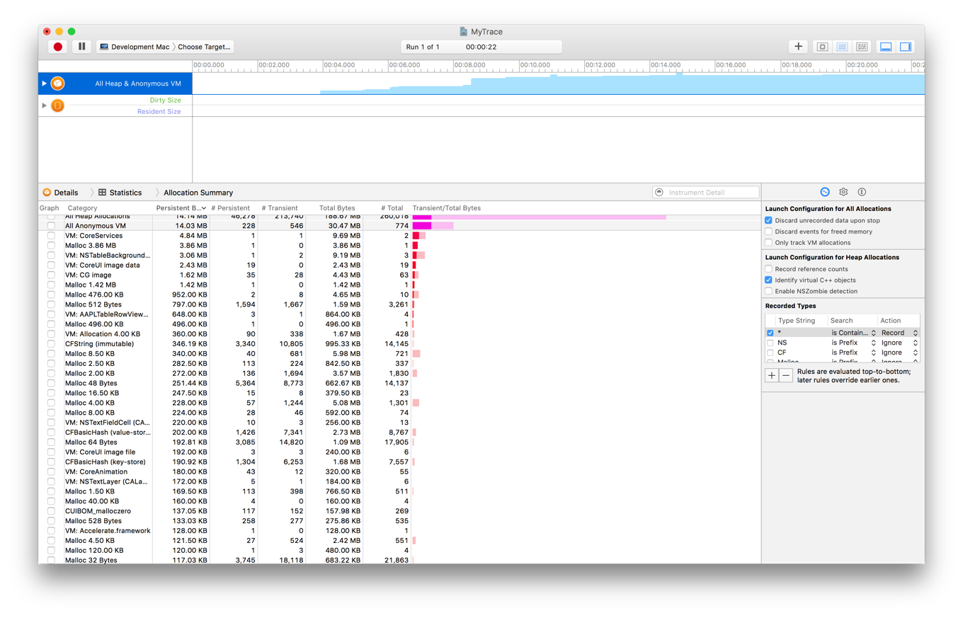 instruments -t "Allocations" -D ~/Desktop/YourTraceFileName.trace PathToYourAppOpen Instruments, and choose File > Open.