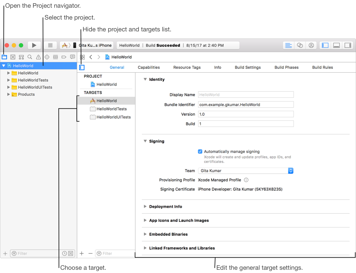 Use the General pane of the project editor to adjust general settings for the targets in your project, such as identity, signing, and deployment options.