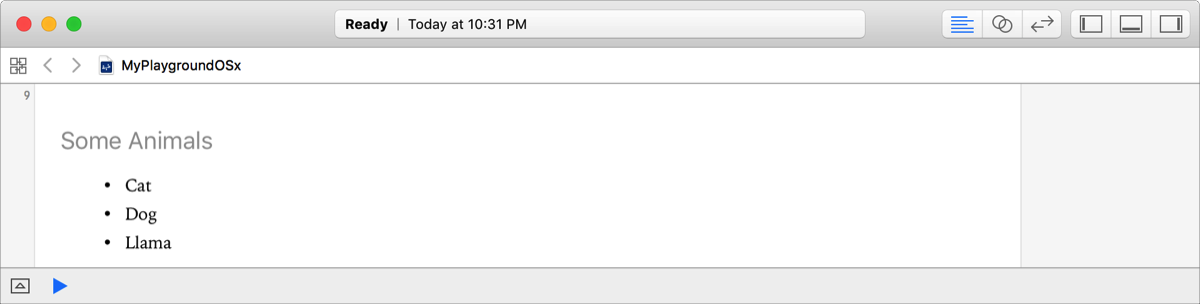 For more information on using markup to show rendered documentation in your playground, see Markup Formatting Reference.