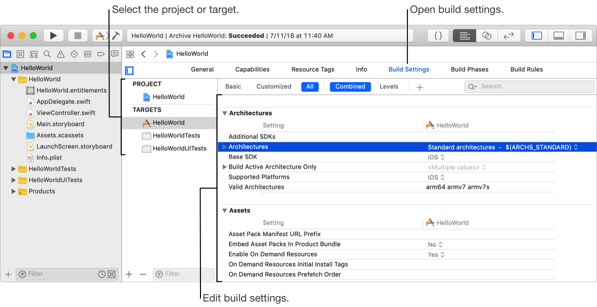 There are hundreds of configurable build settings. To learn more about each setting, go to Build settings reference.