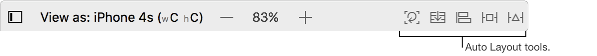 Use the Auto Layout tools in Interface Builder to add, delete, and manage the constraints for a view or view controller. The tools are in the layout bar on the bottom of the Interface Builder canvas.