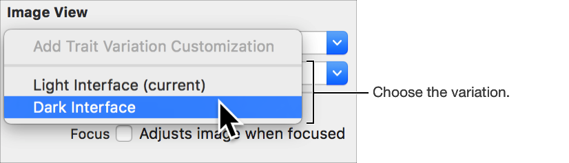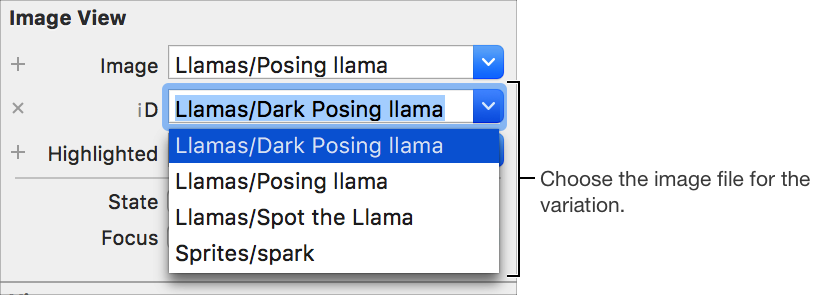 In the Attributes inspector, click the plus (+) button next to image name or to the highlighted image name.
