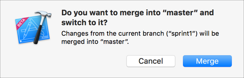 Control-click the branch you want to merge into (for example, master), then choose Merge [source branch] into [target branch].