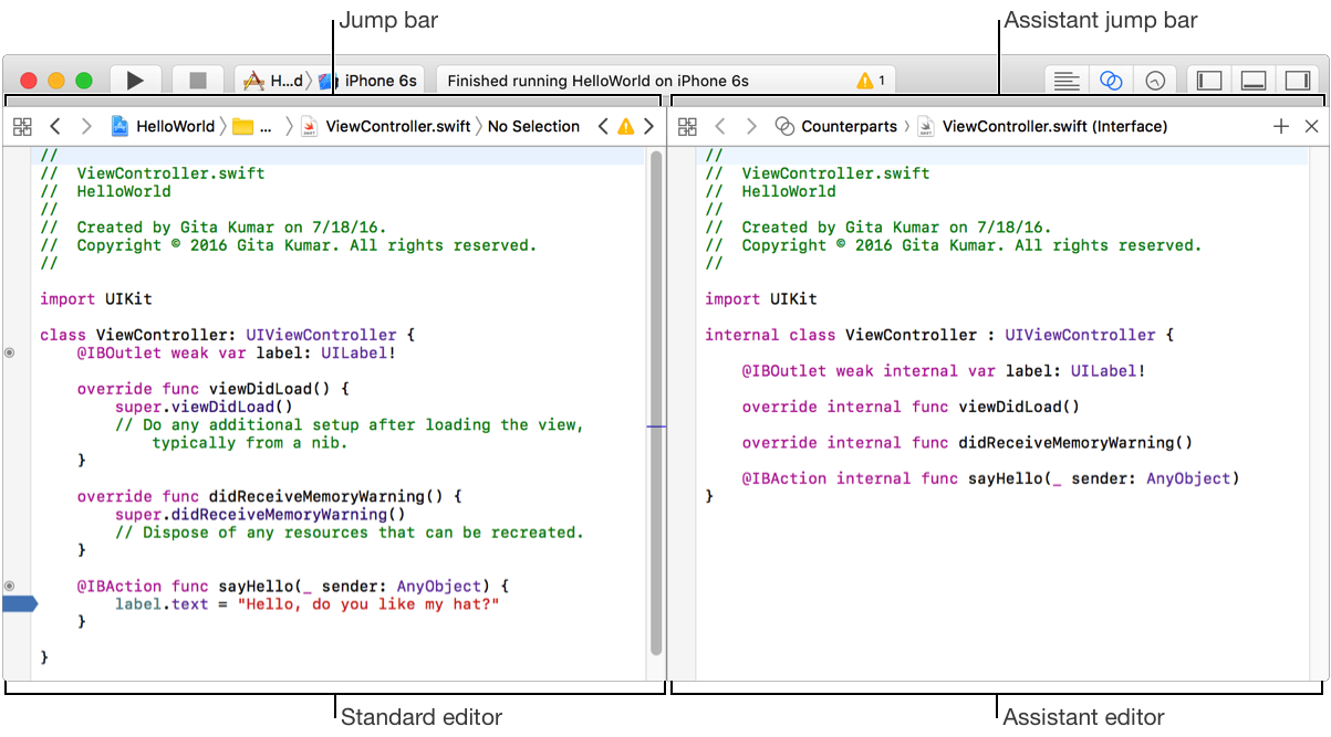 Playground editor: Edit and execute Swift code in an interactive environment.