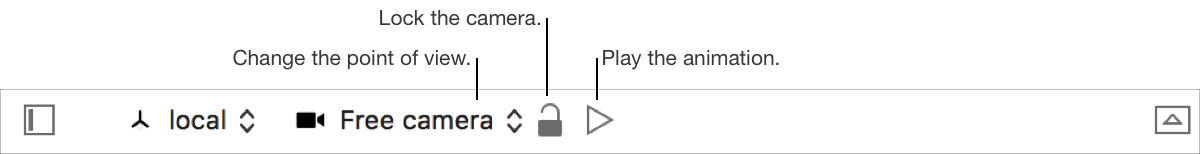 The controls at the bottom of the viewport allow you to customize your view and play your scene’s animation.