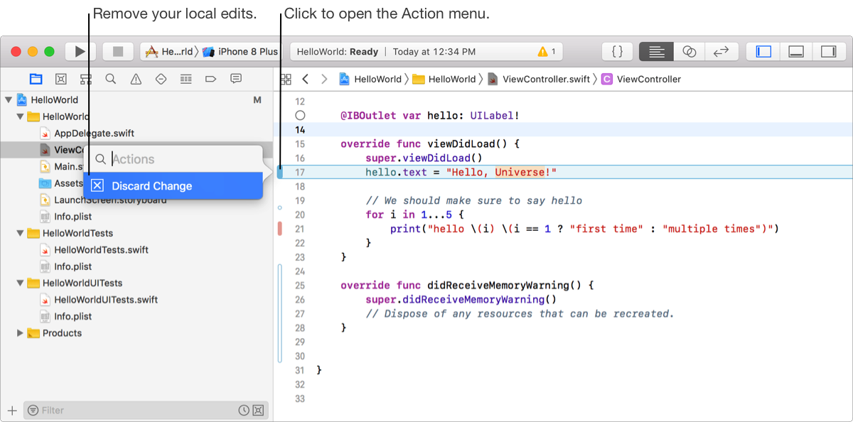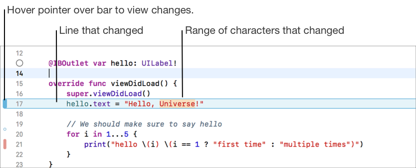If you make changes to your file, a change bar now appears in the gutter of the source editor.