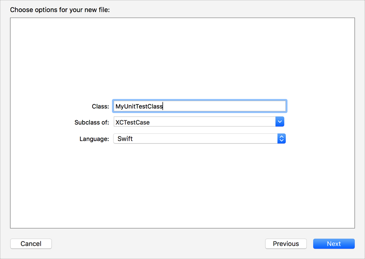 Choose a superclass from the “Subclass of” pop-up menu. By default, classes are subclasses of XCTestCase.