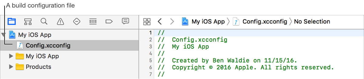 A [SpecifiedFileName].xcconfig file is added to your project.