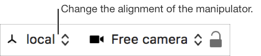 Choose the alignment of the manipulator’s axes by selecting one of the options in the editing space pop-up menu.