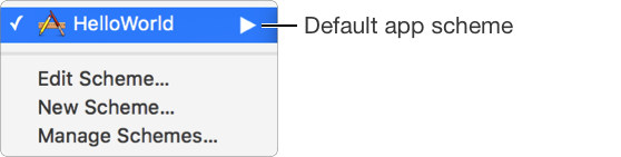 To run your app, choose a scheme from the Scheme pop-up menu in the toolbar. A scheme is a collection of settings that specify the targets to build, the build configuration, and the executable environment. Xcode creates a default scheme for each target in your project. Choose the scheme from the Scheme pop-up menu that matches your app’s name.
