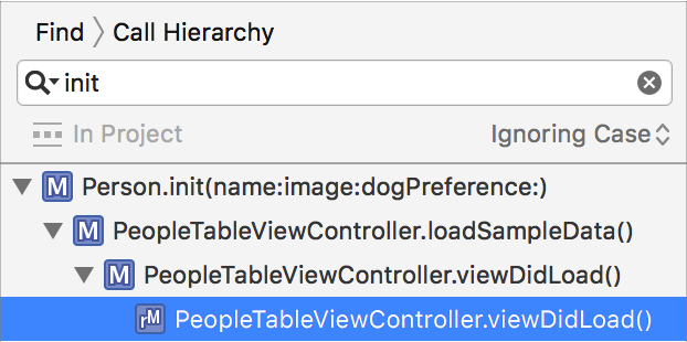 Click the search criteria bar, choose Find > Call Hierarchy.