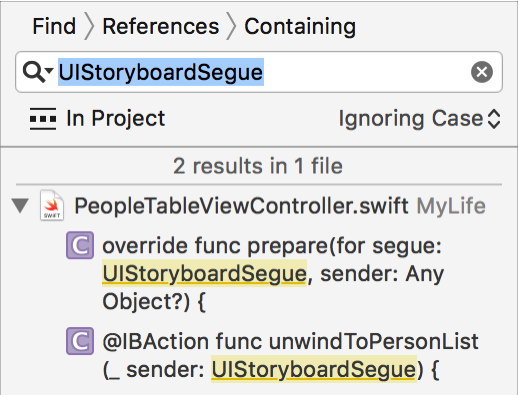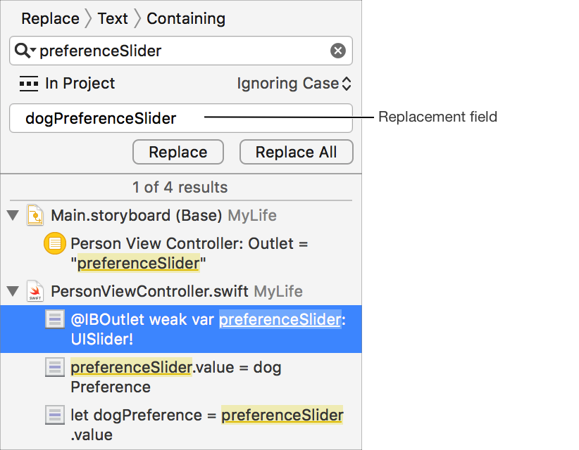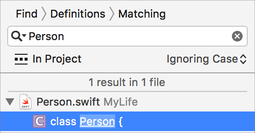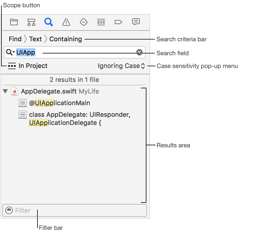 Note: In General preferences, you can set the amount of detail that appears in the Find navigator. See Manage general environment settings.