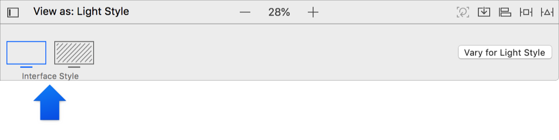 In Interface Builder, use the device configuration pane to view the layout using different device configurations. For example, the layout of an iOS app can be different on an iPhone and iPad and using portrait or landscape orientation. The user interface of a macOS and tvOS app may be different using a light or dark interface style. For iOS apps, the first time you open a user interface file, pick the device you expect most users of your app to use, and then create variations of the user interface for other devices as needed.
