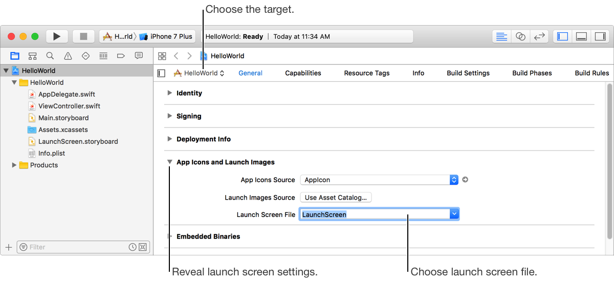 From the Launch Screen File pop-up menu, choose a launch screen file.