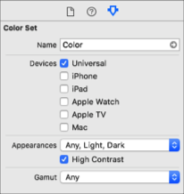 In the Project navigator, select the asset catalog, then select the custom color set.