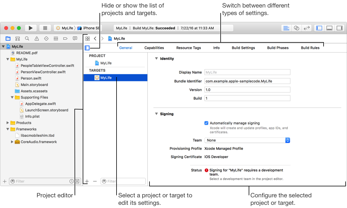 See alsoAbout the General paneWhat are build phases?Link a target to libraries and frameworksRun a shell scriptAdd a capability to a targetRename a project or an app