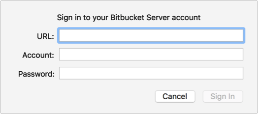 Enter your account name and password and for Bitbucket Server, also enter the URL.