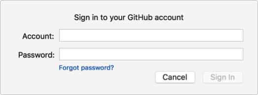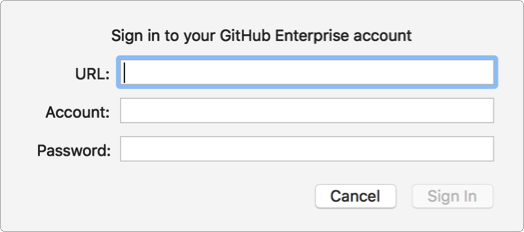 Enter your account name and password, and for GitHub Enterprise, also enter the URL.