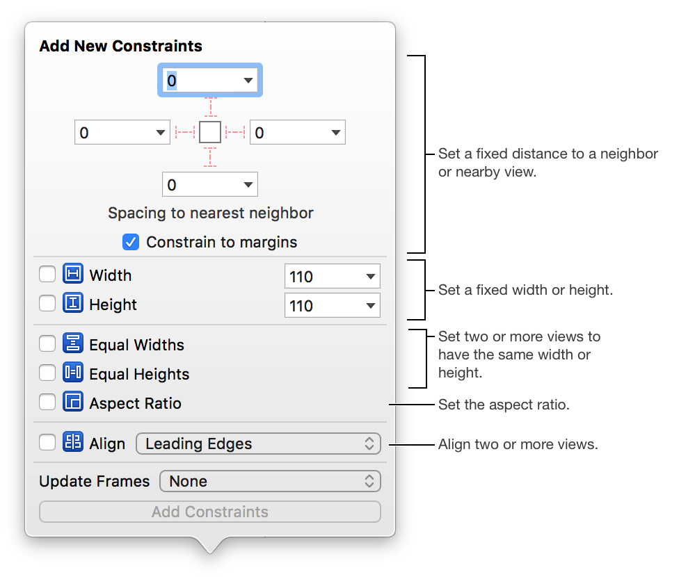 ) to quickly create fixed size, aspect ratio, or position constraints for one or more views.