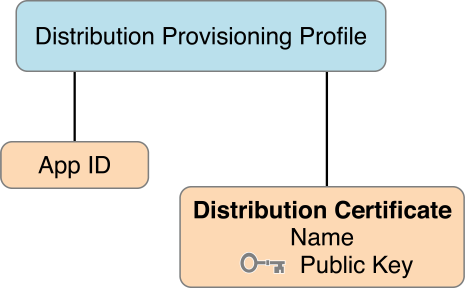 A distribution provisioning profile is a provisioning profile that authorizes your app to use certain app services and ensures that you are a known developer distributing or uploading your app. A distribution provisioning profile contains a single App ID that matches one or more of your apps and a distribution certificate. You configure the App ID indirectly through Xcode to use certain app services. Xcode enables and configures app services by setting entitlements and performing other configuration steps. Some entitlements are enabled for an App ID (stored in your developer account) and others are set in the Xcode project. When you export or upload your app, Xcode signs the app bundle with the distribution certificate referenced in the distribution provisioning profile.