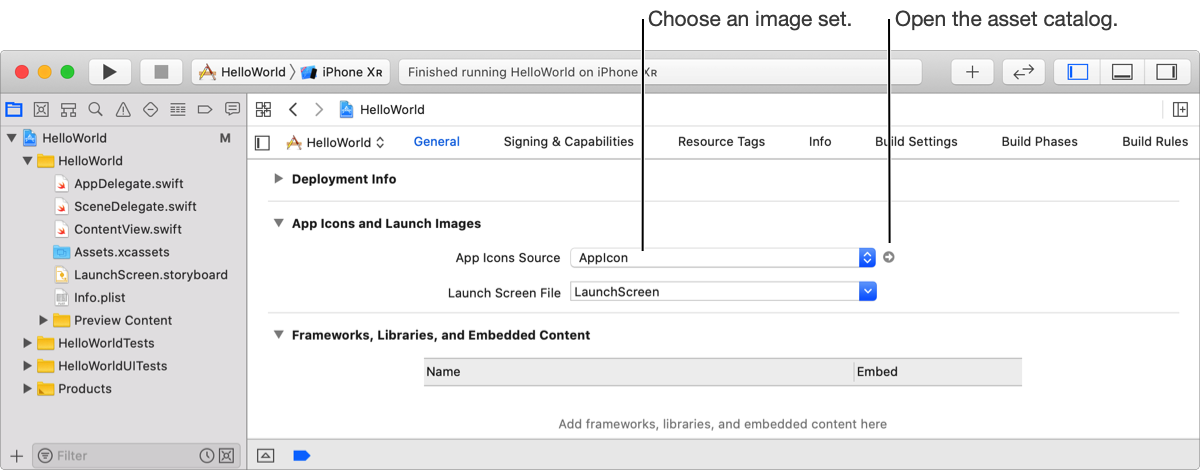 In the “App Icons…” section of the General pane, choose the app icon set from the App Icons Source pop-up menu.