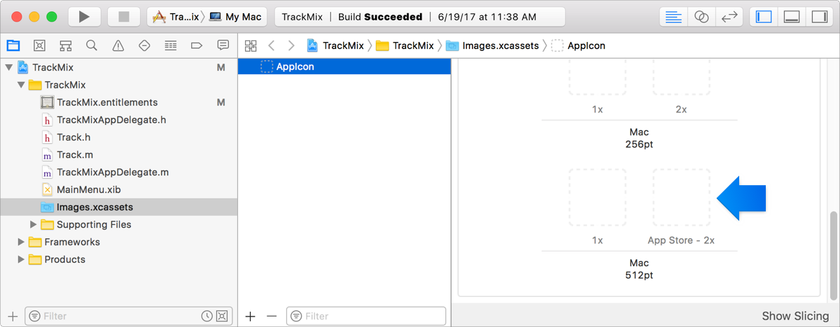 If you distribute your app through the App Store, add the App Store icon to an asset catalog located in the Xcode project. The location of the icon is different depending on the platform.