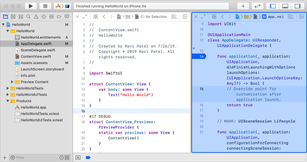Project editor | View and edit your project and target settings, such as build options, target architectures, and code signing characteristics. | ||||||||||