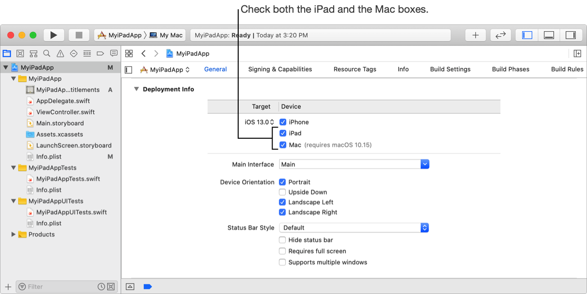 Important: Building the Mac version of an iPad app requires macOS 10.15 or later.
