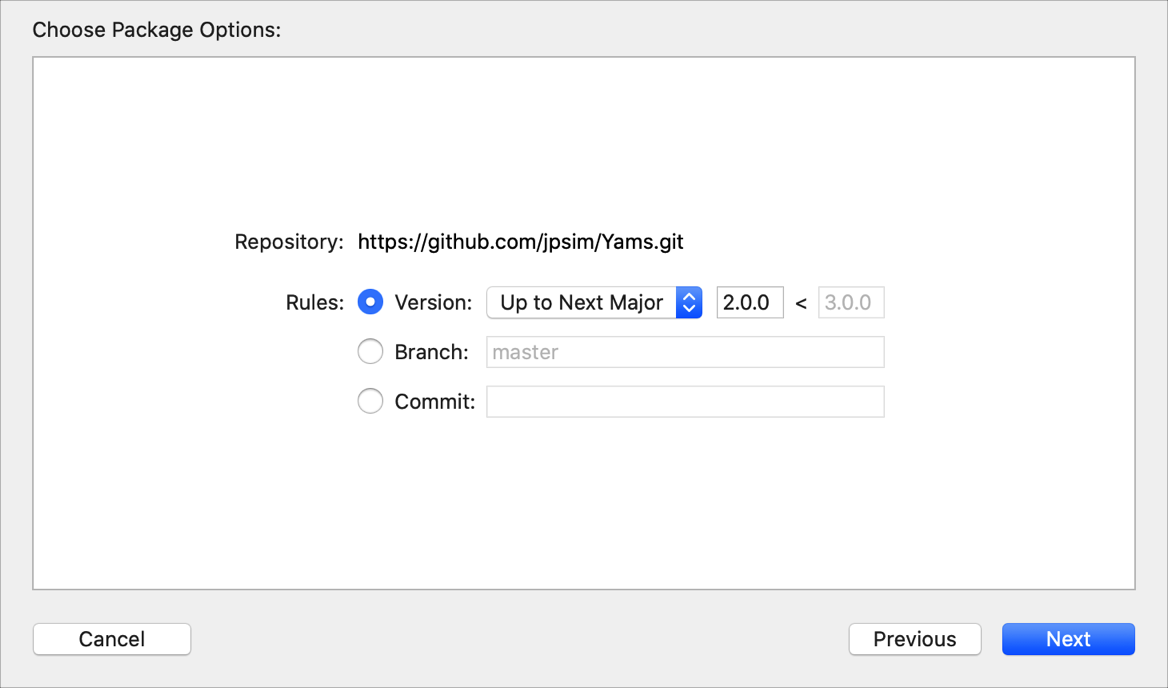 In the sheet that appears, choose Add Package Dependency from the Add Other pop-up menu.