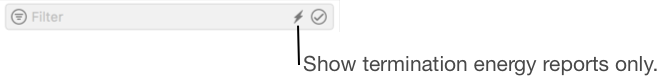 For energy reports, to show reports where the app was terminated for excessive CPU usage, click the lightning bolt icon (