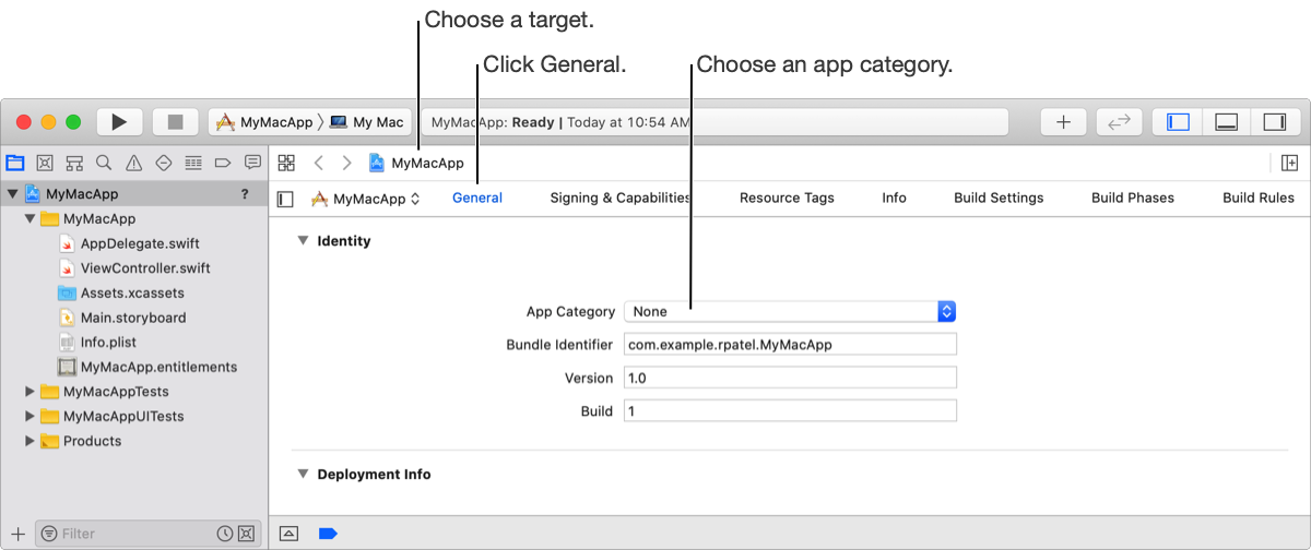 Set the category under which your macOS app will be listed on the Mac App Store. The category you select should match the category you later select in App Store Connect. For more details on app categories, go to App Store Connect Help.