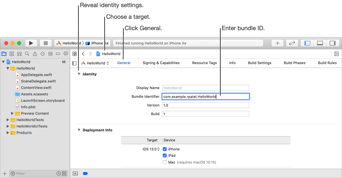 Important: The bundle ID in the Xcode project must match the bundle ID in App Store Connect. If you previously uploaded your app to App Store Connect, you can no longer change the bundle ID in App Store Connect.