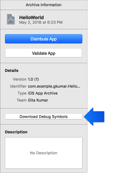 Click the Download Debug Symbols button.