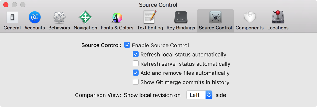 Use Source Control preferences to enable, disable, or manage source control behavior.