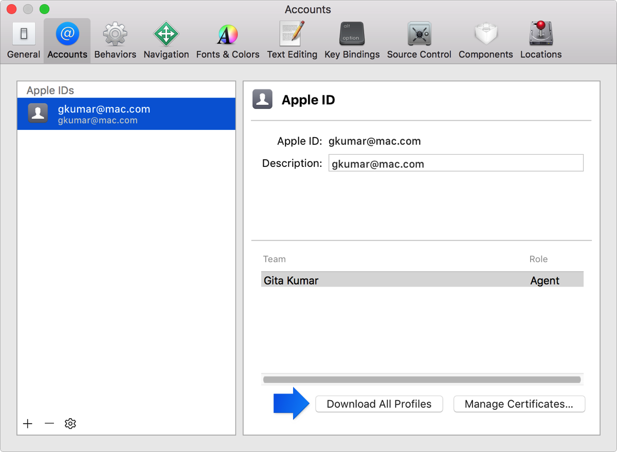 Note: You must have an Apple ID that belongs to the Apple Developer Program to manage provisioning profiles. If you are using a personal account or are a member of a team, the tasks you can perform may be limited.