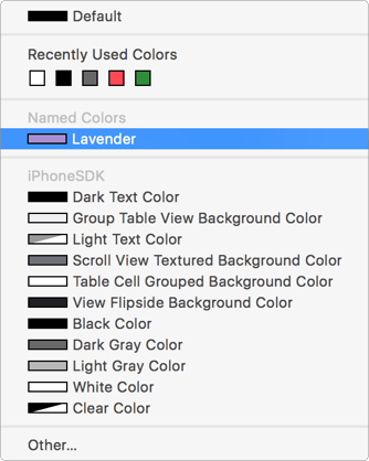 You can create a color that is device-specific or the same on all devices. You give the color set a name and it appears in the color menu in Interface Builder.
