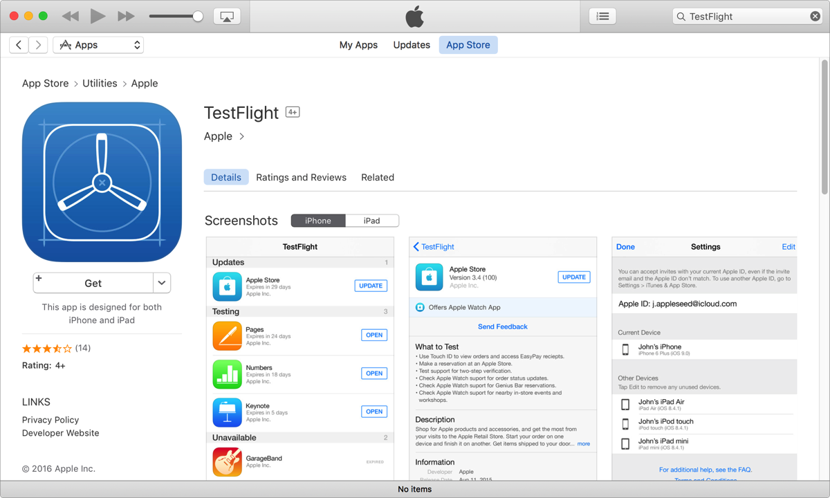 The TestFlight app allows testers to install and beta test your app on iOS, tvOS, and watchOS devices. Testers must receive an invite directly from you before they can begin testing with TestFlight. Once testers accept your invitation, they can install, test, send feedback, and get updates of your beta app.