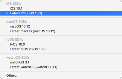 For iOS apps, set Base SDK to Latest iOS. For macOS apps, set Base SDK to Latest macOS. If you select another value, download and install the latest SDK version that’s greater than or equal to your device software version.