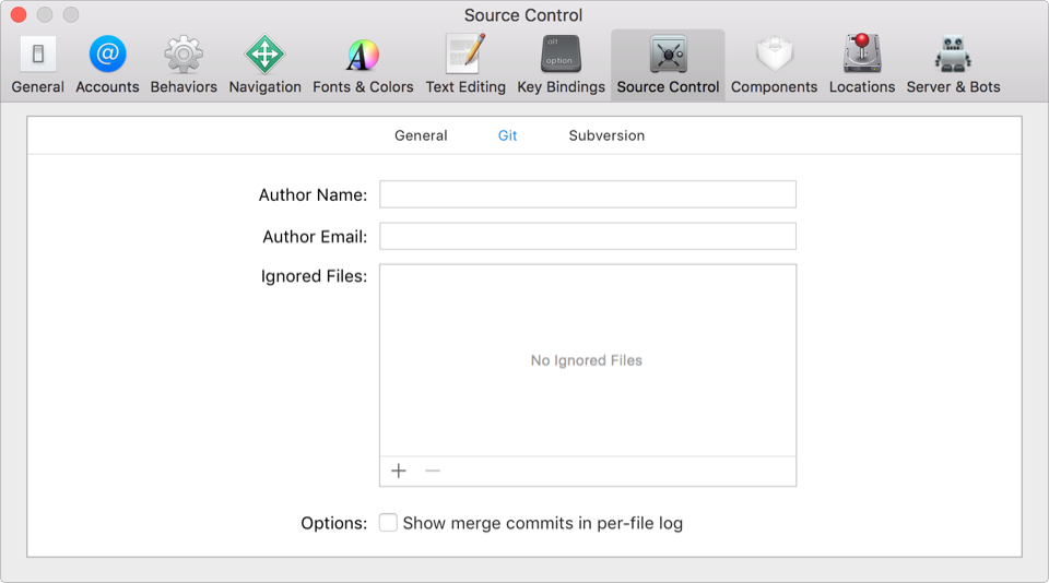 Use Source Control preferences to configure source control, including specific systems, such as Git and Subversion. On the General pane, you can enable or disable source control, and customize behavior.