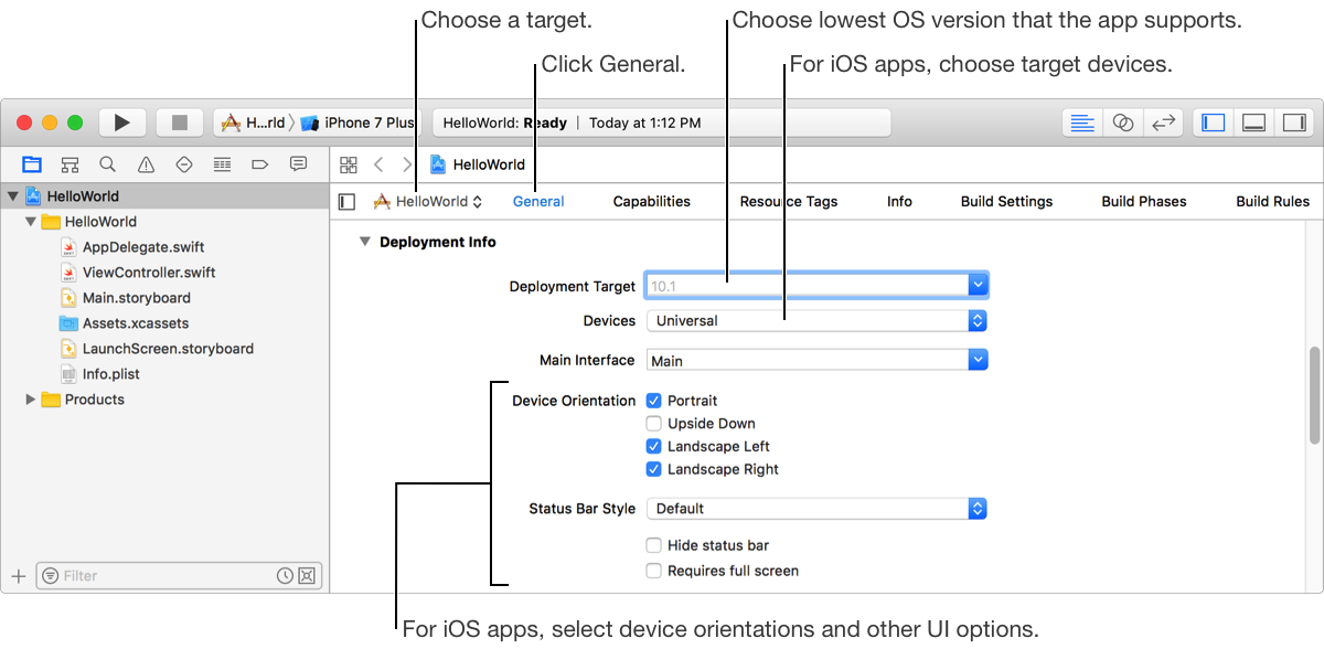 The default deployment settings are sufficient for development, but it’s best to review these settings before you distribute your app. Some settings must match values you enter in iTunes Connect later.