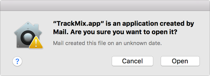 In Terminal, enter the following command by replacing TrackMix.app with the path to your app.