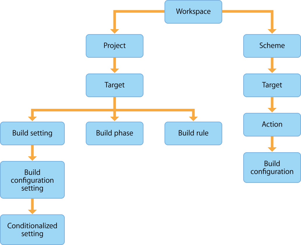 When an action (build, run, test, profile, analyze, or archive) is initiated for a scheme, the build system: