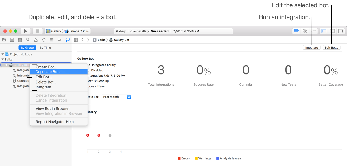 See alsoContinuous integration using Xcode ServerCreate a bot