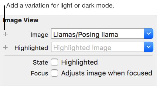 In the Attributes inspector, click the plus (+) button next to image name or to the highlighted image name.