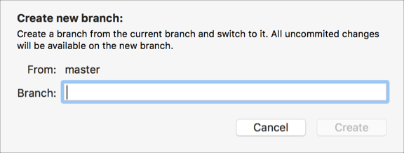 In the sheet that appears, enter the name of the new branch, and click Create.