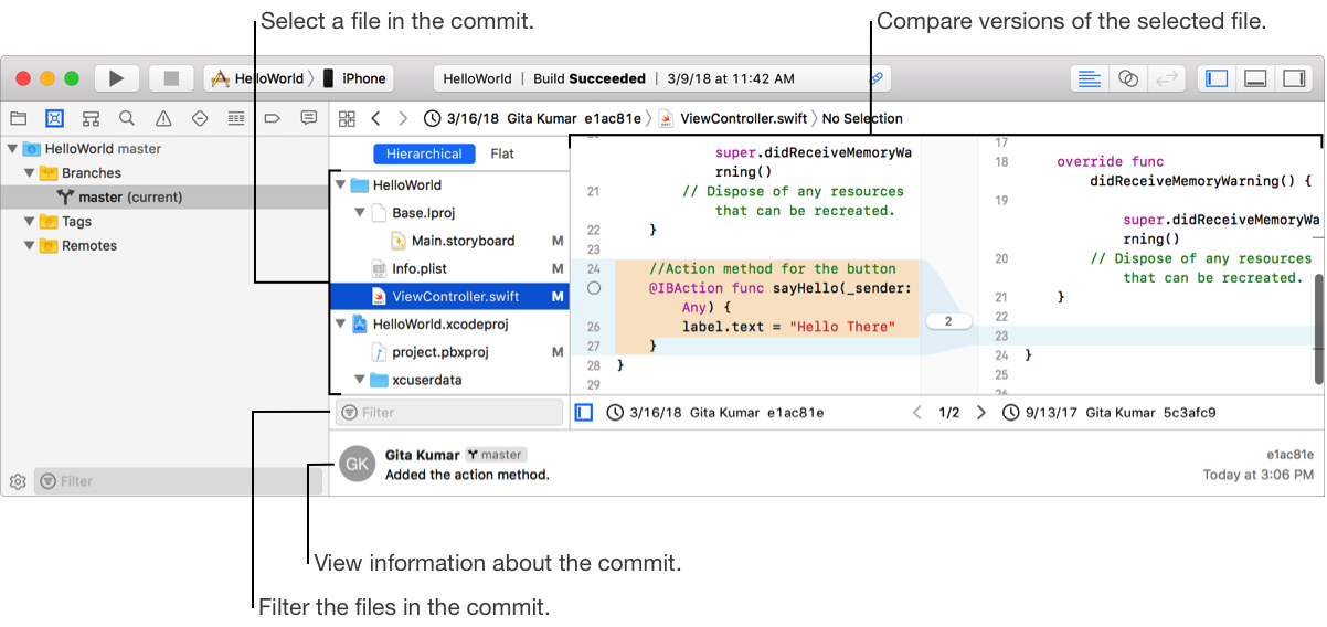 ) from the version editor pop-up menu described in Compare revisions of a file.