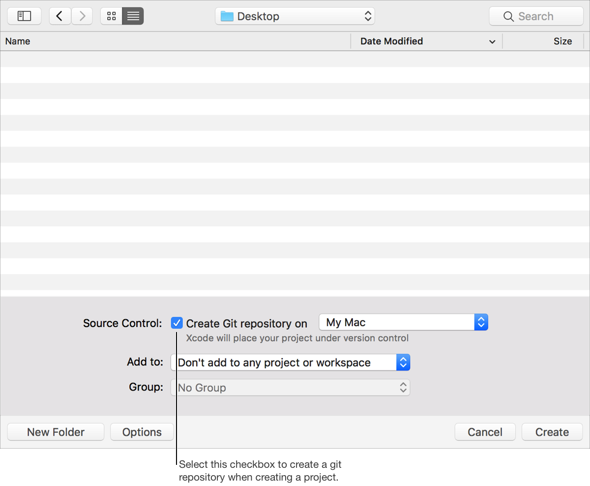 Git is a free, open-source source control system. Git can be used purely as a local repository, or you can install a Git server on a remote computer to share a repository among team members. If you’re working alone, it’s easiest to use Git, because you won’t need to set up a server. When you create a project, Xcode can automatically set up a Git repository for you.