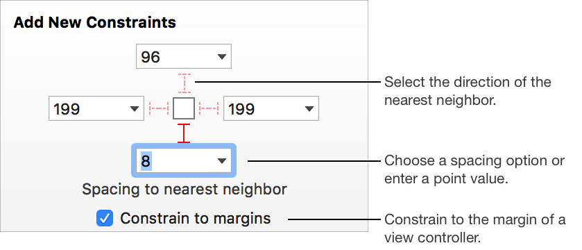 At the bottom of the canvas, click the Add New Constraints tool button in the layout bar.