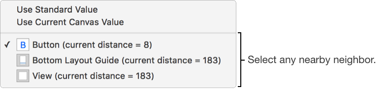 Use the recommended spacing between views: Choose Use Standard Value from the pop-up menu.